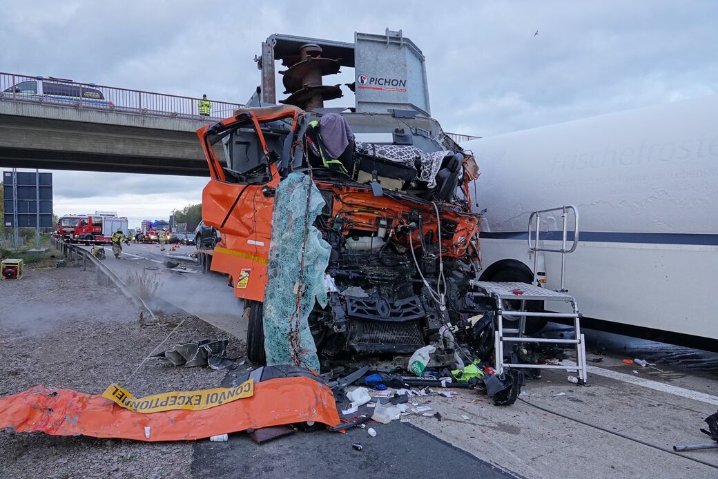 Die übrigen Unfallbeteiligten blieben den Angaben zufolge unverletzt, waren jedoch geschockt. Einer der Laster war nur so leicht beschädigt, dass er nach dem Unfall weiterfahren konnte.