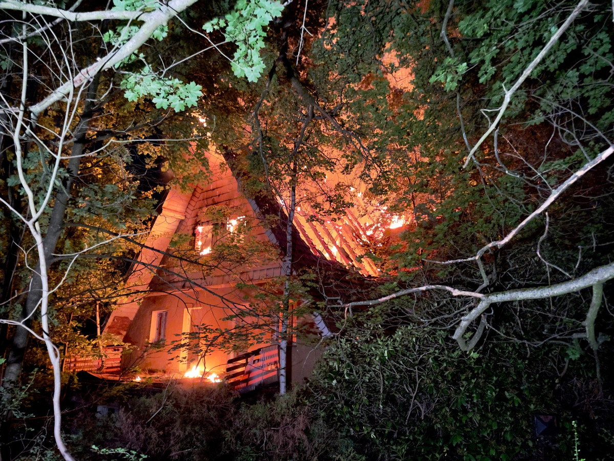 Der ehemalige Kindergarten inmitten hoher Bäume brannte lichterloh und in voller Ausdehnung. Mit zwei Drehleitern und mehreren Löschtrupps versuchten die Feuerwehrmänner an das Gebäude heranzukommen. Die Wasserversorgung musste über weite Strecken aufgebaut werden. Schließlich war der Brand gelöscht, vom Gebäude blieb aber nichts übrig.