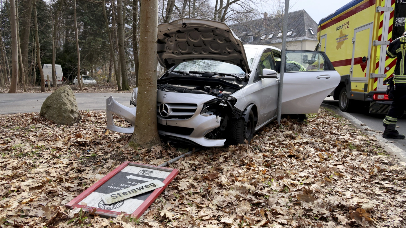 Am Steinweg: Gegen Baum gekracht