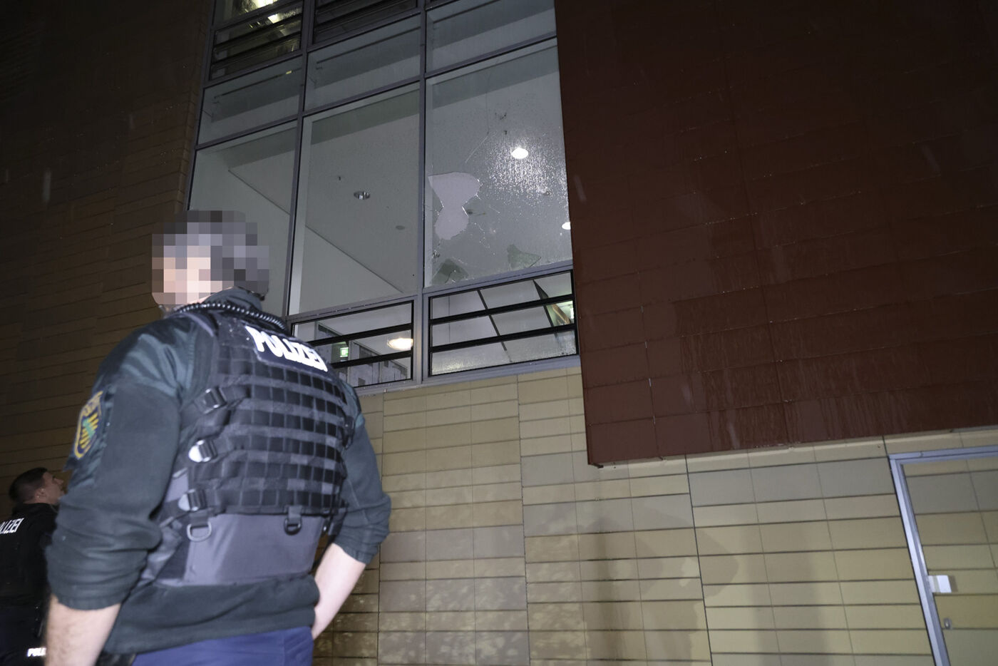 Betroffen war eine große Scheibe im Bereich des Foyers an der Gerichtsstraße 2. Der Schaden beträgt rund 1.500 Euro. Die Beamten sicherten Spuren und nahmen Hinweise von Passanten auf.