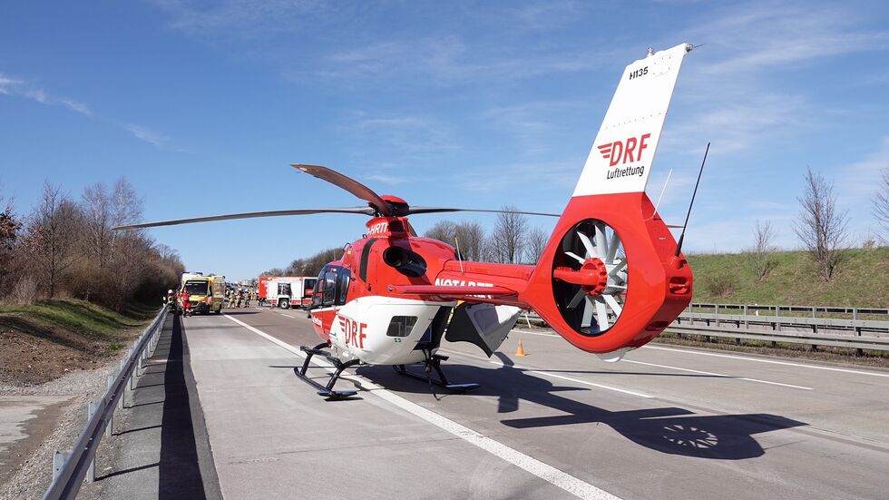 Eine Frau, ein Mann und ein Kleinkind aus dem Audi wurden vorsorglich ins Krankenhaus gebracht. Der Rettungshubschrauber „Christoph 38“ brachte den Notarzt an die Unfallstelle.