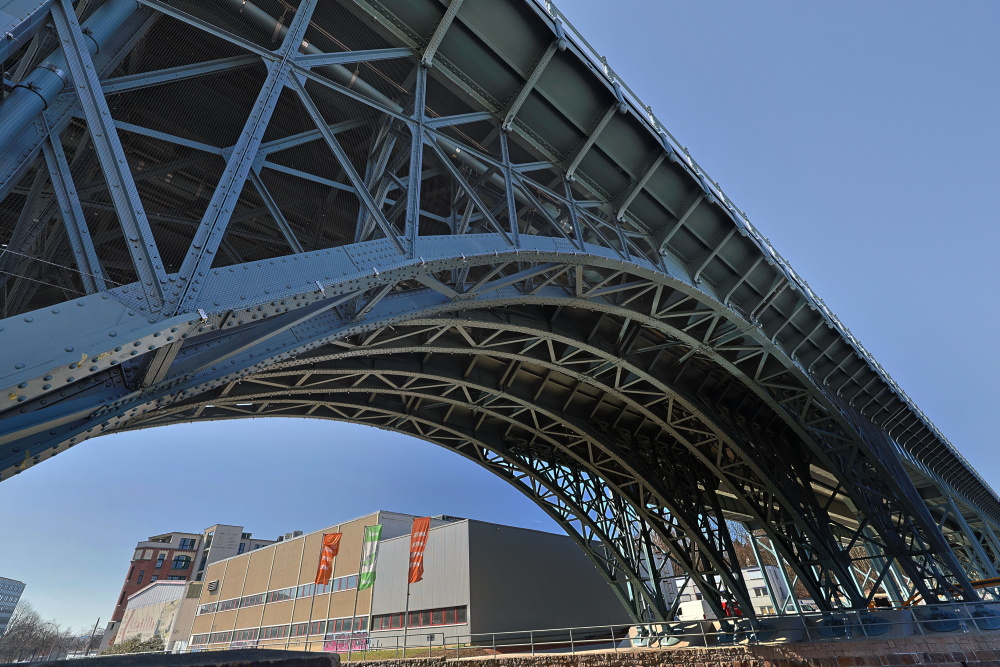 Die Herausforderung: Die historischen Strukturen bewahren und gleichzeitig modernen Bahnverkehr ermöglichen. Die Lösung war ein Kompromiss: Zwei Brückenzüge blieben in ihrer historischen Form erhalten, während die beiden anderen modernisiert wurden. Statt vier Gleisen wird der Bahnverkehr nun auf zwei Gleisen abgewickelt. Lärmschutzwände wurden reduziert, historische Bauteile restauriert, Nietverbindungen und Geländer denkmalgerecht erneuert. 95 Prozent der Lager blieben erhalten, überlastete Elemente wurden ausgetauscht.