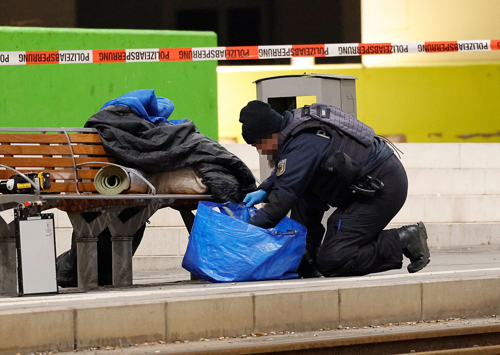- Spezialisten untersuchten die blaue Plastiktasche, fanden aber keinen Sprengstoff.