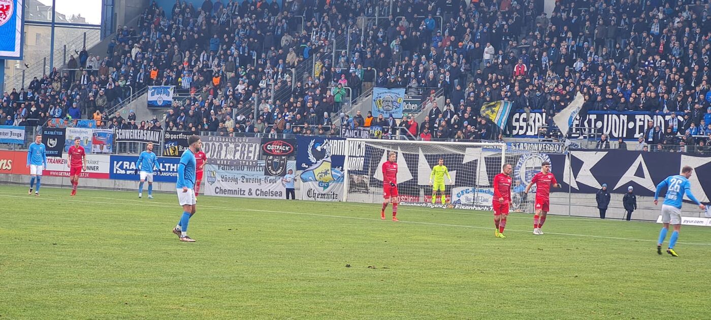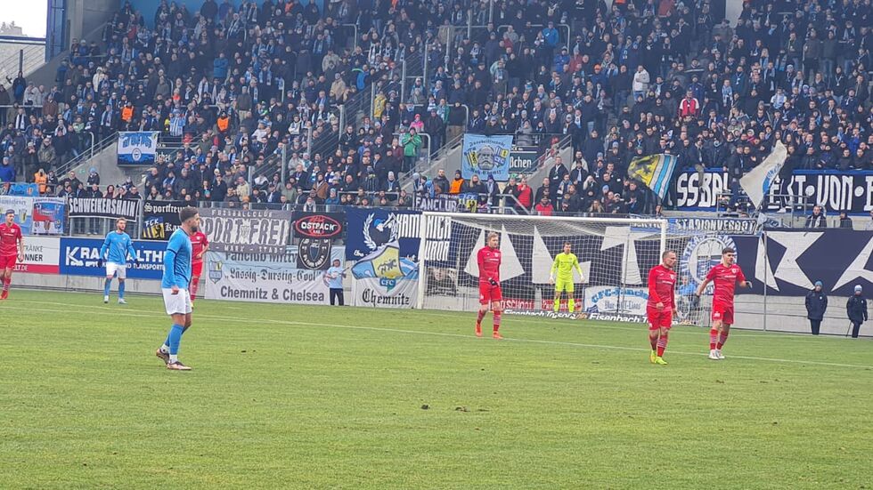 Der Chemnitzer FC hat am Sonntag sein erstes Heimspiel des Jahres gewonnen. Die Himmelblauen bezwangen den Greifswalder FC mit 2:0. Die Tore schossen Stephan Mensah und Tim Campulka. Damit klettert der CFC auf Platz zwei der Regionalliga-Tabelle.