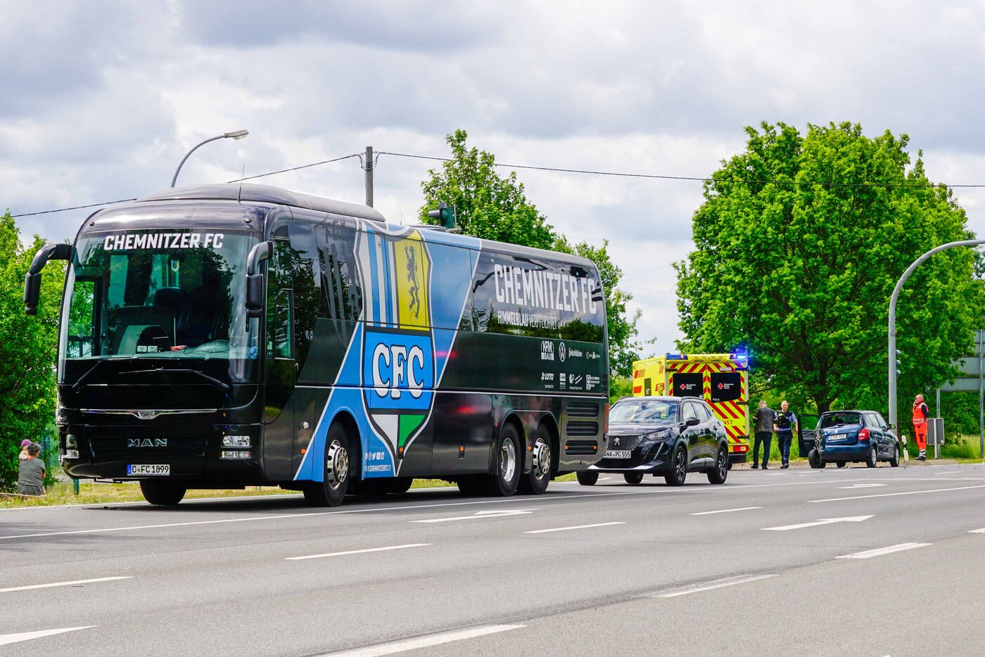 Die U19 des Chemnitzer FC ist am Himmelfahrtstag in einen Unfall auf der B169 in Döbeln verwickelt worden. Wie die Polizei mitteilte, kam es gegen 11.30 Uhr an der Kreuzung Gärtitzstraße zu einem Zusammenstoß zwischen dem Mannschaftsbus und einem Skoda Fabia. Demnach soll der Fabia an einer roten Ampel gebremst haben.