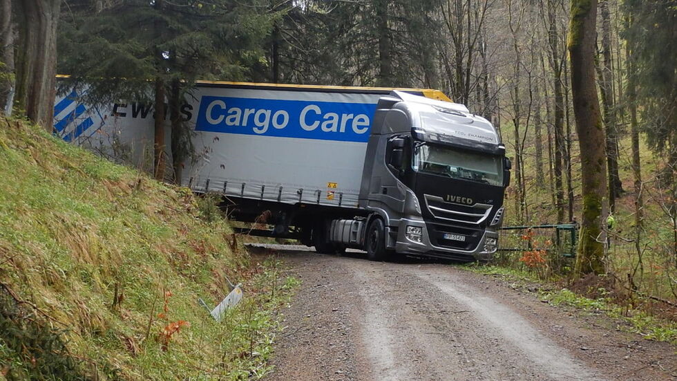 Zu einem ungewöhnlichen Einsatz ist ein Chemnitzer Bergedienst gerufen worden. Die Firma MOKROS musste mit ihrem Schwerlastkran in den Erzgebirgswald an der Grenze zu Tschechien ausrücken. Bei Jöhstadt hatte sich am Mittwoch ein ukrainischer LKW hoffnungslos festgefahren. Nachdem er sich auf sein Navi verlassen hatte, verkeilte der Fahrer den Sattelschlepper auf einem Waldweg in einer Kurve. Der Laster drohte zeitweise in einen Bach zu stürzen. Es dauerte mehrere Stunden, den LKW zu bergen.