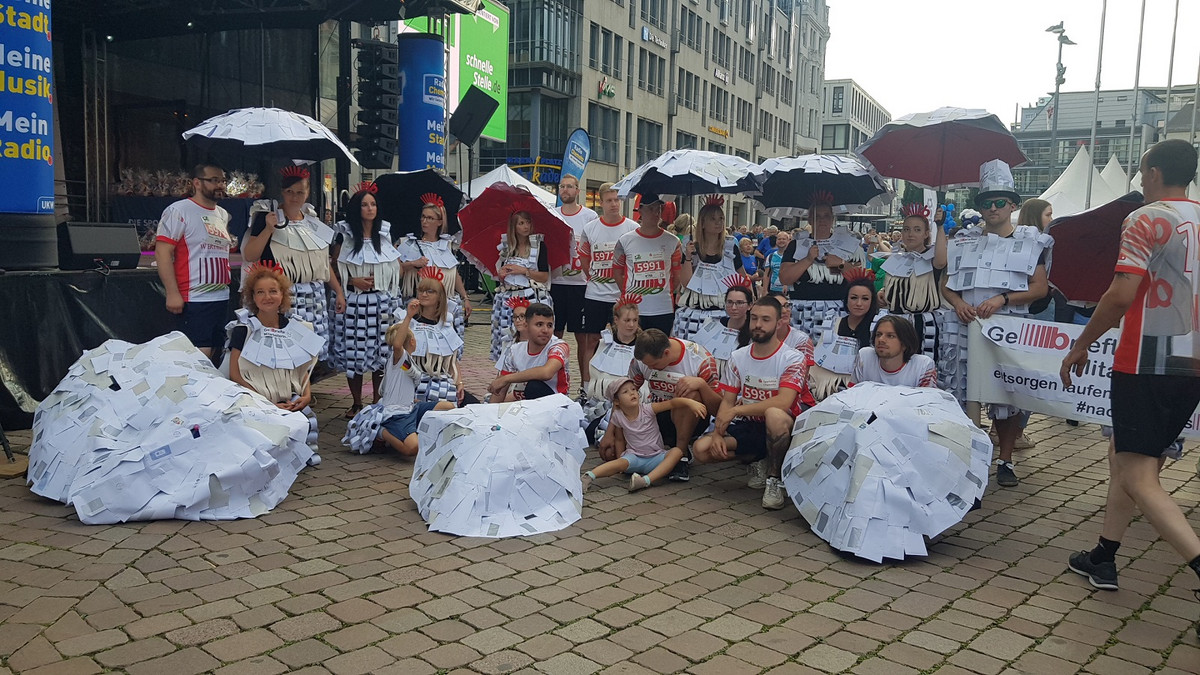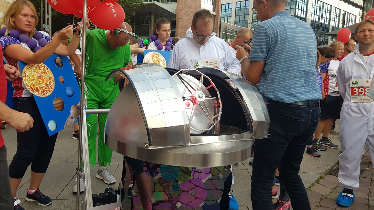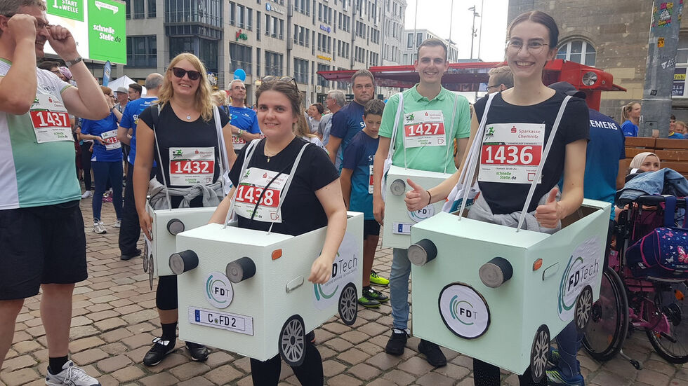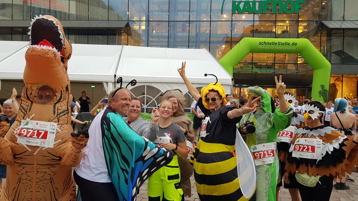Beim Chemnitzer Firmenlauf waren am Mittwochabend rund 6.000 Teilnehmer in der Innenstadt unterwegs. Dabei präsentierten sich rund 500 Unternehmen mit teils verrückten Utensilien und Kostümen.