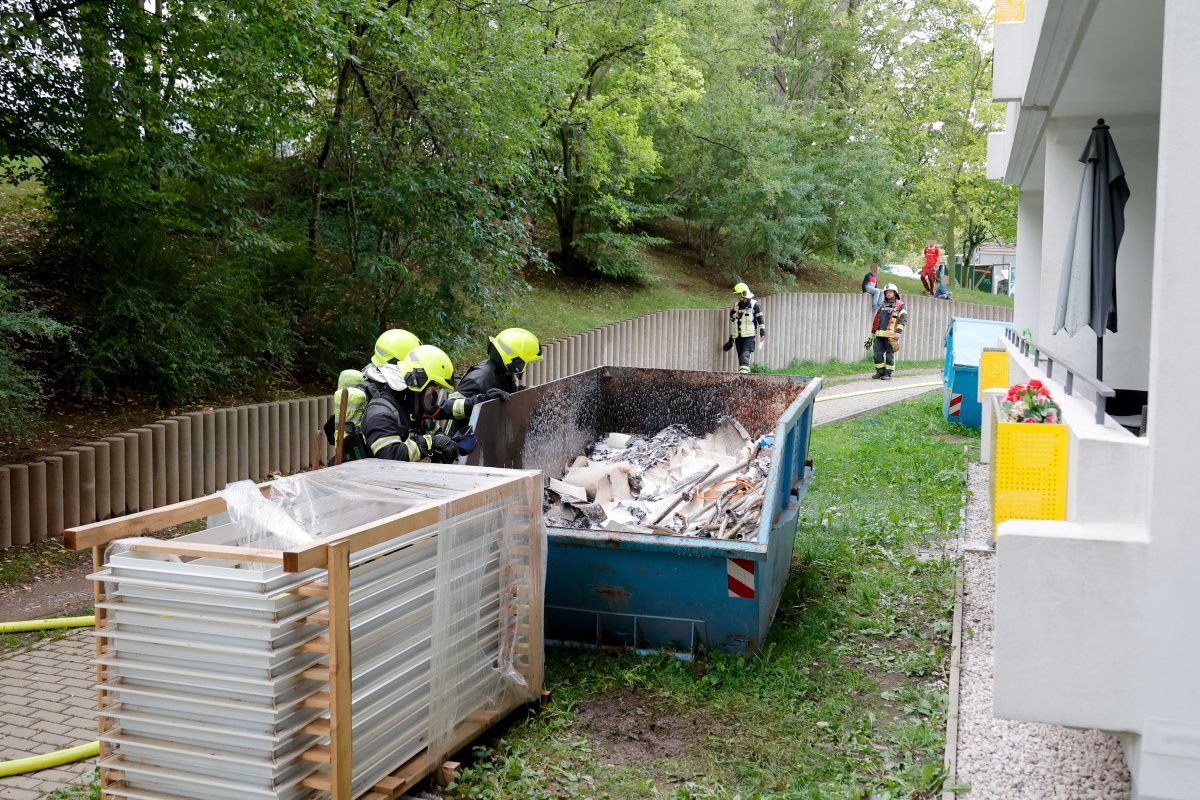 Vor einem Elfgeschosser auf der Bruno-Granz-Straße haben Unbekannte am Donnerstagabend einen Container mit Bauschutt in Brand gesetzt. Offenbar mit Feuerwerkskörpern, teilte die Polizei mit. Im Block finden aktuell Sanierungsmaßnahmen statt.