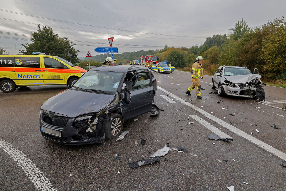 An der Auffahrt zur A 72 in Kändler hat es am Freitagmorgen einen schweren Verkehrsunfall gegeben. Nach Reporterangaben krachte ein Suzuki frontal auf einen Skoda. Beide Fahrer wurden schwer verletzt. Die Feuerwehr war im Einsatz, um auslaufende Betriebsmittel zu binden und die Unfallstelle abzusichern. Die Staatsstraße 243 war für Rettungs- und Bergungsarbeiten voll gesperrt.