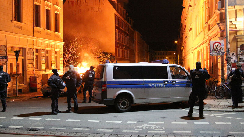 Nachdem in Connewitz Polizisten von Demonstranten mit Gegenständen und Pyrotechnik beworfen wurden, ermittelt die Polizei nun gegen einige wegen Landfriedensbruchs. Ein Dutzend Personen seien nach Angaben der Polizei aktuell in strafprozessualen Maßnahmen.