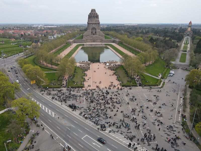 15:40 Uhr: Raddemo am Völkerschlachtdenkmal angekommen