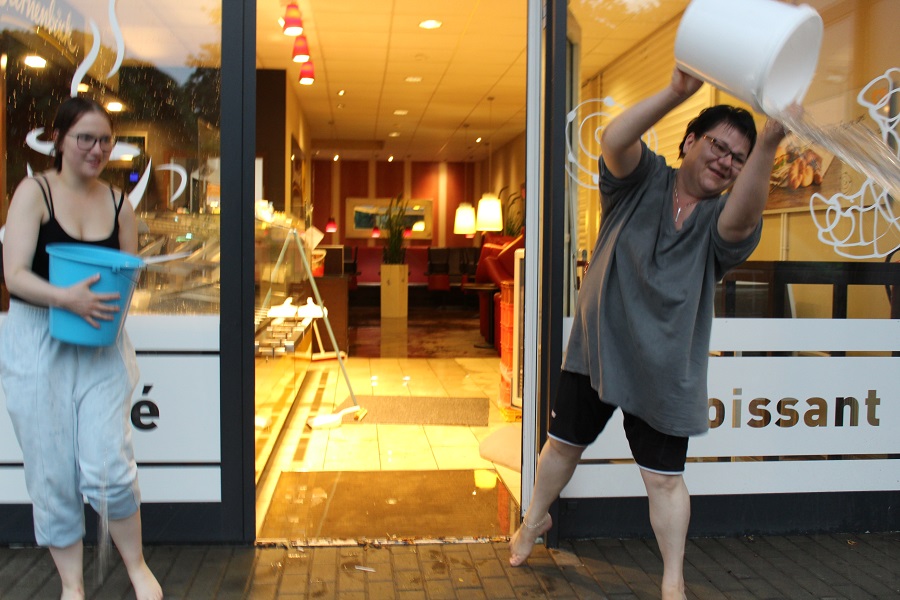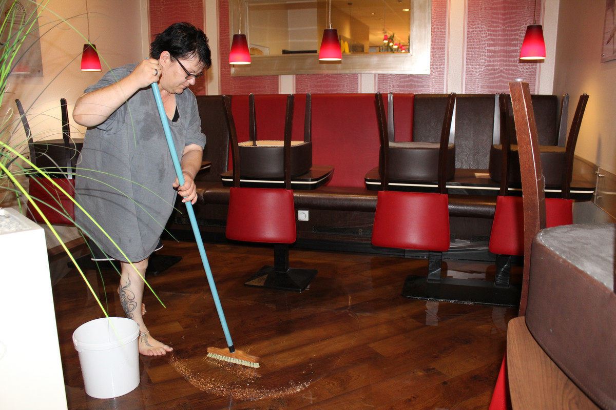 Land unter war vor allem im Bahnhofsviertel und in der Jahnstraße, berichtete unser Korrespondent. Einwohner schöpften mit Eimern das Wasser aus Garagen und Kellern.