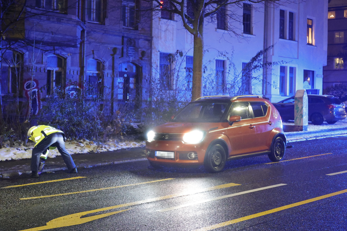 - Die Autofahrerin hat die Fußgängerin in der Dunkelheit zu spät gesehen.