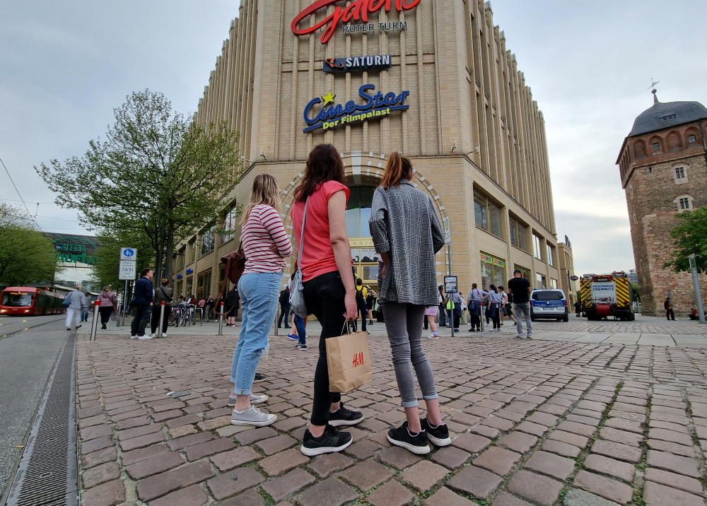 Ein Feueralarm in der Galerie Roter Turm hat eine Stunde vor Ladenschluss für Aufregung gesorgt. Laut unserem Reporter waren gestern gegen 19 Uhr Feuerwehr und Polizei vor Ort – die Galerie musste komplett geräumt werden. Auslöser des Alarms war ein technischer Defekt. Wie sich herausstellte, rauchte in einer der oberen Ebenen eine Elektroverteilerdose. Der Schaden ließ sich schnell beheben, einen Brand gab es nicht. Schon eine halbe Stunde später konnte der Geschäftsbetrieb in dem Einkaufszentrum weitergehen.