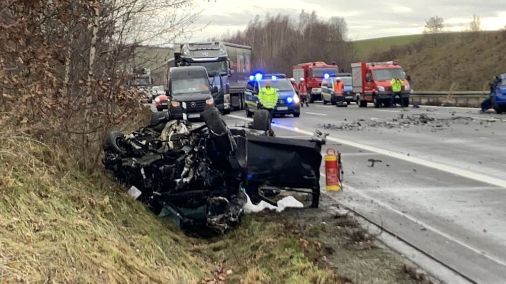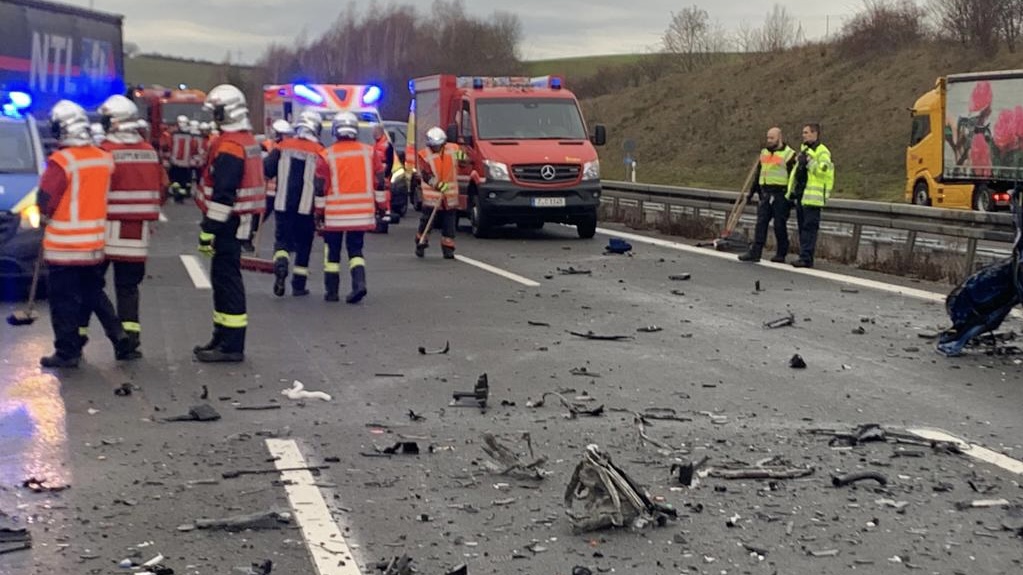 Eine Polizeisprecherin sprach von einem verheerenden Bild an der Unfallstelle. Die Autobahn wurde gesperrt, und der Verkehr an der Anschlussstelle Schmölln abgeleitet, so die Polizei. Auch ein Rettungshubschrauber war alarmiert worden.