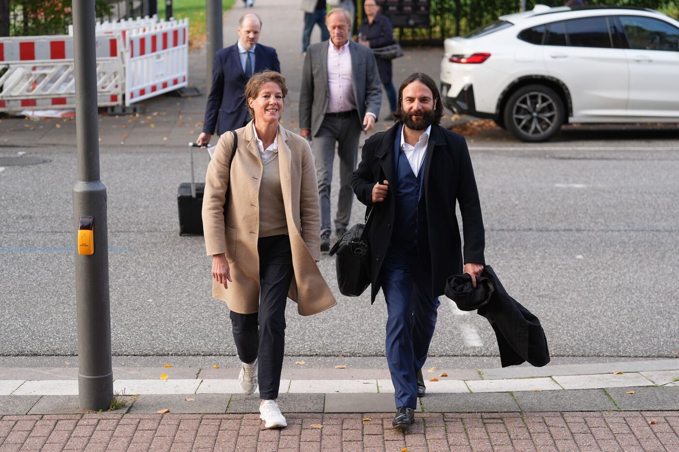 - Unternehmerin Block (links) und ihr Verteidiger Bott (rechts) laufen zum Landgericht.