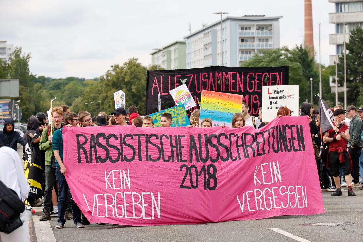 Fünf Jahre nach den rassistischen Ausschreitungen in Chemnitz haben Samstagnachmittag in der Innenstadt mehrere hundert Menschen gegen rechte Gewalt demonstriert. Unter dem Motto „Kein Vergessen, kein Vergeben, kein Schlussstrich“ hatte das Bündnis „Chemnitz Nazifrei“ zu einer Kundgebung mit anschließendem Aufzug aufgerufen. Die Polizei hatte sich auf einen Einsatz vorbereitet und Kräfte der Bereitschaftspolizei zur Unterstützung erhalten. Anlass war der tödliche Angriff auf einen 35-Jährigen in der Chemnitzer Innenstadt im Jahr 2018. Auf die Gewalttat folgte damals eine Welle rechtsterroristischer Gewalt mit zahlreichen Verletzten. (mit dpa)