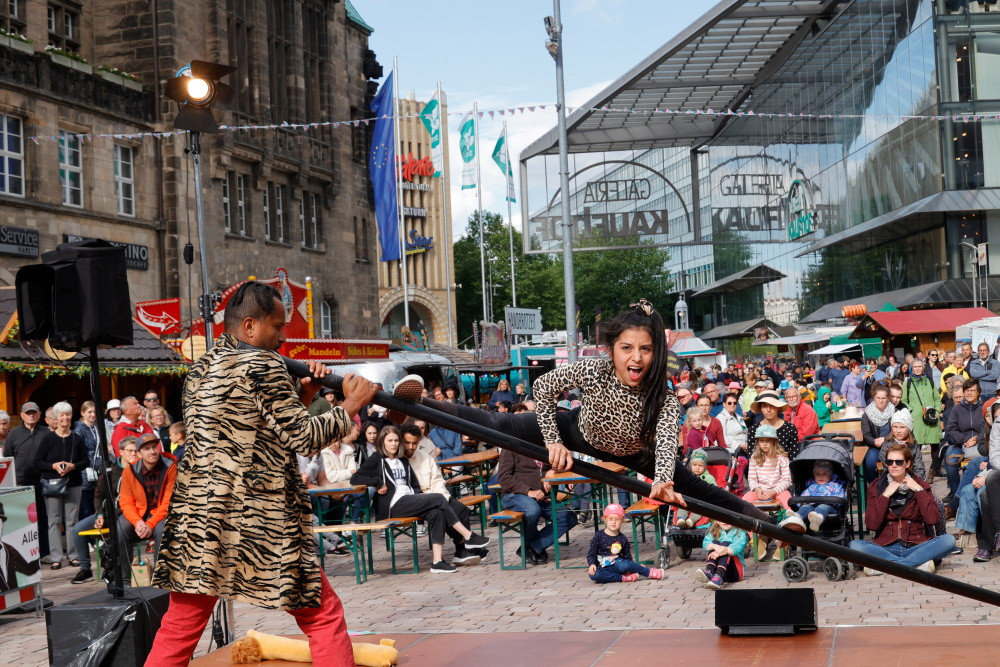 Das Chemnitzer Hutfestival hat am Wochenende zahlreiche Besucher in die Innenstadt gelockt. Rund 55.000 Gäste wurden laut Veranstalter C3 gezählt. Das waren deutlich mehr als im vergangenen Jahr. Rund 150 Straßenkünstler aus ganz Europa unterhielten die Gäste auf und zwischen den insgesamt neun Bühnen. Auch zwischenzeitliche Regenfälle hielten die Chemnitzer und ihre Besucher nicht davon ab, in der City zu feiern. Viele davon trugen dabei teils ausgefallene Kopfbedeckungen. Das nächste Hutfestival ist bereits geplant. Es soll im kommenden Jahr vom 19. bis zum 21. Mai steigen.