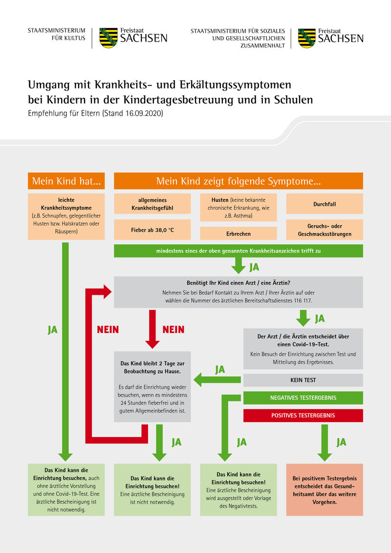 Mit Beginn des neuen Schuljahres sind die Kinder wieder in Ihren Klassen bzw. im Kindergarten. Viele Eltern fragen sich – auch mit Blick auf die anstehende Erkältungszeit – was tun, wenn mal die Nase läuft, es im Hals kratzt oder ähnliches? Muss das Kind dann zuhause bleiben? Sollte man den Arzt aufsuchen und einen Corona Test machen lassen?