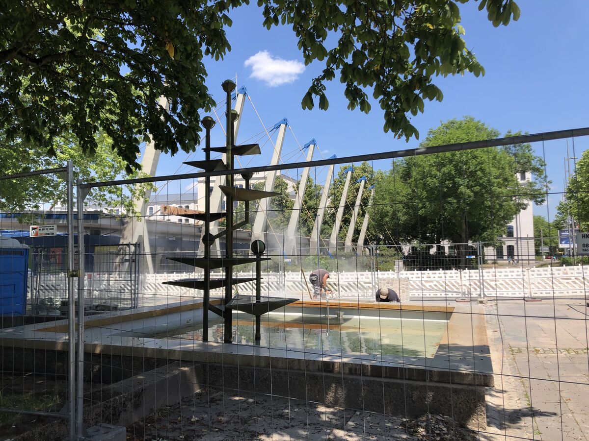 Der Klapperbrunnen am Chemnitzer Busbahnhof ist zwar fertiggestellt, allerdings noch nicht in Betrieb. Nach einem Testlauf wurde er wieder abgeschaltet. Wann er wieder sprudelt, ist noch unklar. Die Stadt peilt als Termin Anfang Juli an.