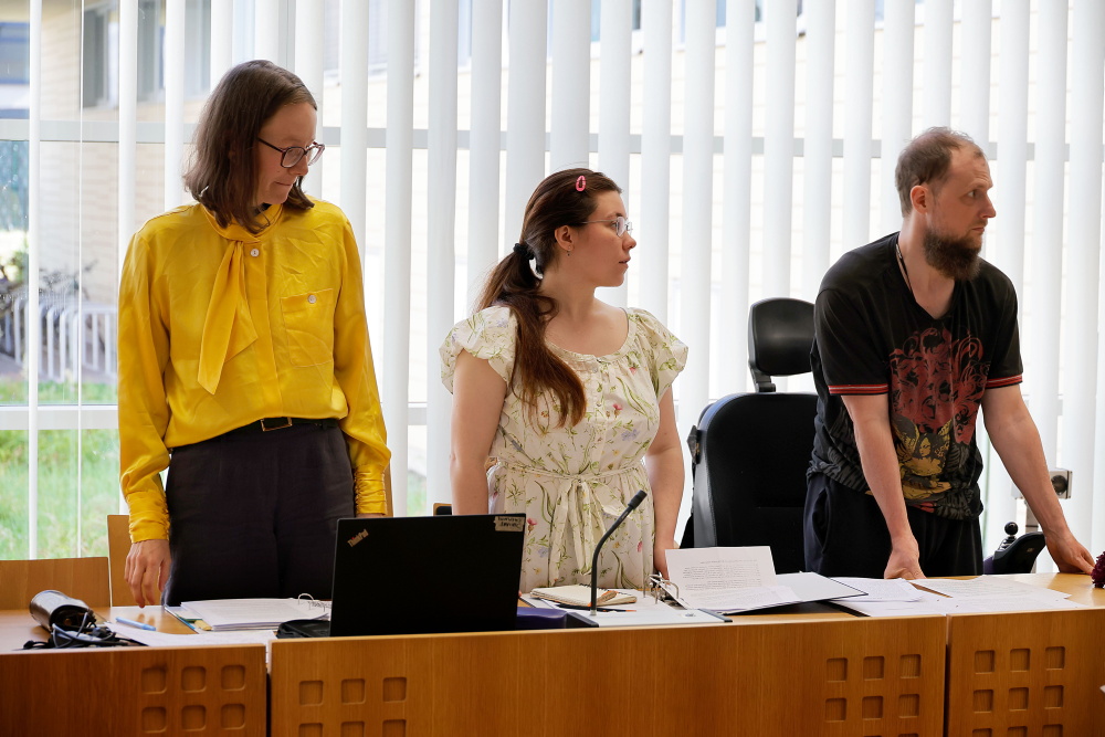 - Klimakleber vor dem Amtsgericht: Juliane Schmidt, Alina Joy R. und Matthias S. (v.l.)