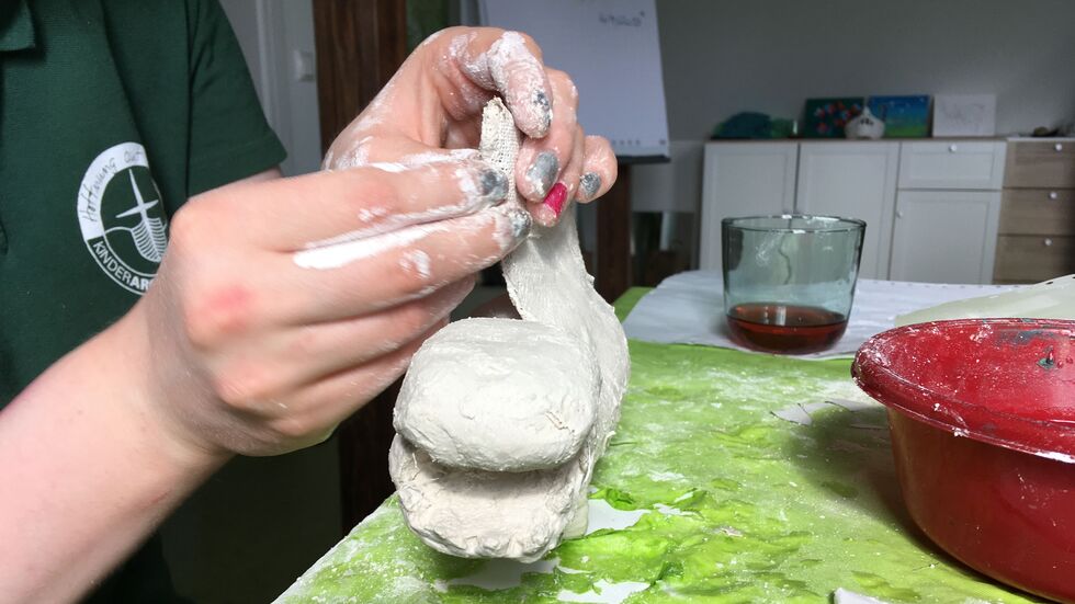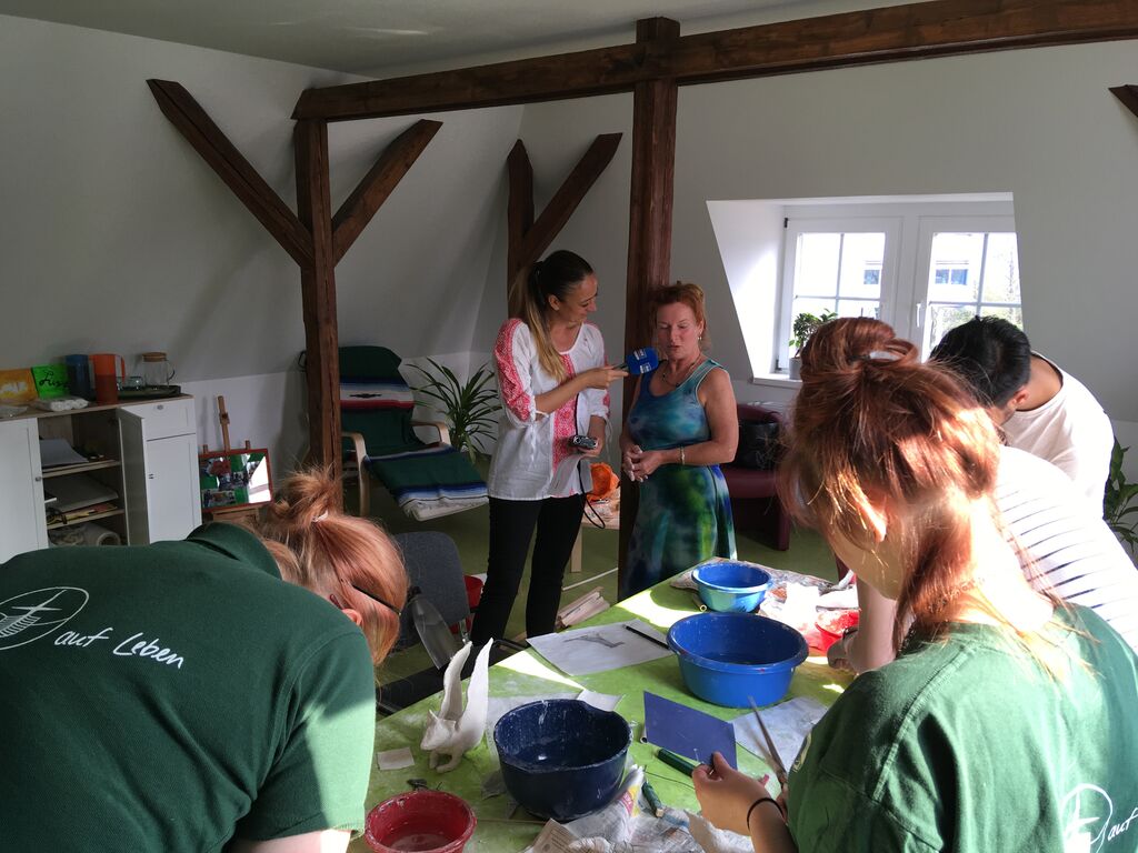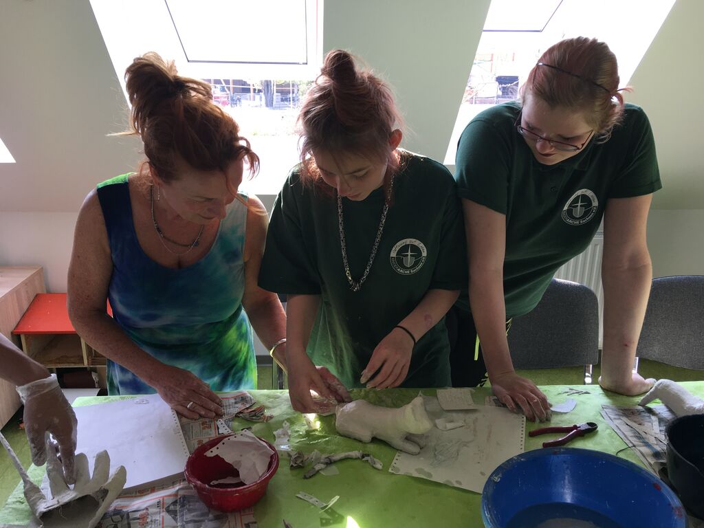 „Jeder Eindruck braucht einen Ausdruck“ - das ist das Motto von Kunsttherapeutin Uta Welcker-Annies. Die Jugendlichen in der heilpädagogisch-therapeutischen Wohngruppe in Naundorf können durch die kreative Arbeit Erlebtes aufarbeiten und Gefühle nonverbal umsetzen. Nach einer kurzen Meditation wurden kleine Skizzen gefertigt und dann ging es auch schon an den Gips. Entstanden sind wunderbare Phantasiewesen mit Eigenschaften, die die Kinder schon haben oder gerne hätten. Die ganze Gruppe war mit Begeisterung dabei und zum Schluss war jeder stolz auf sein eigenes Werk. Eine unglaublich wichtige Erfahrung für die Kids!