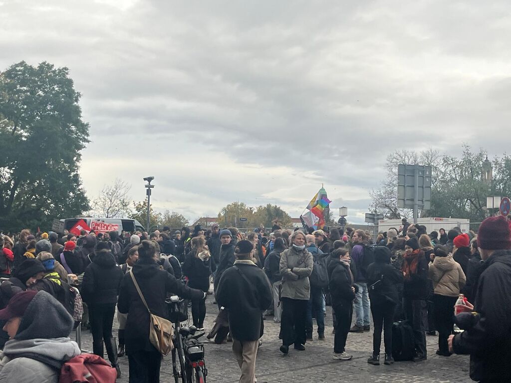 Vor der Staatskanzlei demonstrierten derweil Hunderte Menschen gegen Äußerungen von Bundeskanzler Friedrich Merz