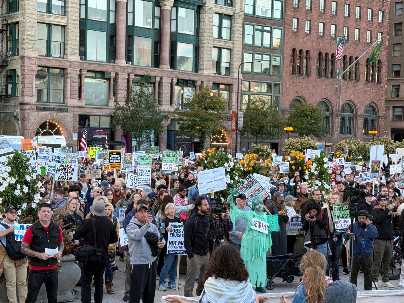 - Hunderte demonstrieren in der Innenstadt Chicagos gegen die ICE-Razzien und einen drohenden Einsatz der Nationalgarde in der Stadt.