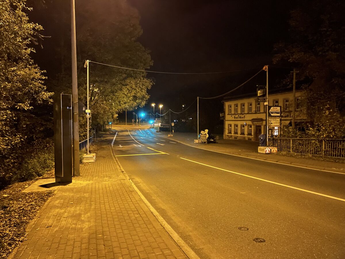- Die Blitzersäulen stehen beidseitig in Höhe des Gasthofs Brettmühle - hier stadteinwärts am Abzweig Mittweidaer Straße.