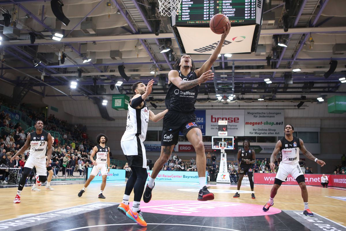 Die Basketballer der Niners haben am Dienstagabend beim Tabellenletzten Bayreuth klar mit 102:86 gewonnen. Damit dürfte der Klassenerhalt in der ersten Bundesliga gesichert sein. Den größten Anteil am zwölften Saisonsieg hatten Kevin Yebo (22 Punkte) und Nelson Weidemann (15 Punkte). Nach einem ausgeglichenen erste Viertel ließen es die Chemnitzer an der Intensität in der Verteidigung fehlen. Hinzu kam anfangs eine schwache Trefferquote aus dem Feld. Bayreuth zog von 28:26 (11.) auf 45:33 (16.) davon. Bis zum 60:52 (24.) gaben die Gastgeber den Ton an. Dann gelang den Sachsen mit einem 8:0-Lauf der 60:60-Ausgleich (27.) und beim 67:65 (29.) die erste Führung in der zweiten Halbzeit. Mit einem 12:0-Lauf zu Beginn des letzten Viertels von 71:69 (31.) auf 83:69 (34.) stellten die Chemnitzer die Weichen auf Sieg. Vor allem die Wurfausbeute aus der Nahdistanz (29 Treffer bei 40 Versuchen) führte zu dem am Ende noch deutlichen Erfolg. (mit dpa)