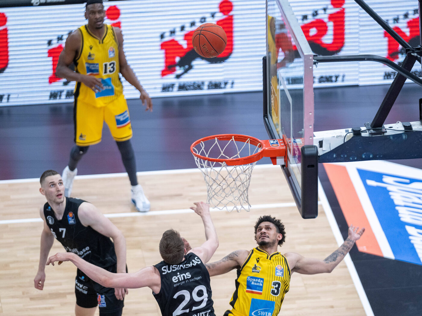 Über 40 Minuten lieferten sich beide Mannschaften einen offenen Schlagabtausch. Dabei hatten zunächst die Gäste, die nach 14 Minuten mit 33:24 führten, leichte Vorteile. Den Vorsprung konnte Chemnitz bis hinein ins letzte Viertel behaupten (72:70, 34.). Doch mit einem energischen Endspurt wendeten die Ludwigsburger das Blatt, erzielte sieben Punkte hintereinander und ließen sich die 77:72-Führung nicht mehr aus der Hand nehmen. (dpa)