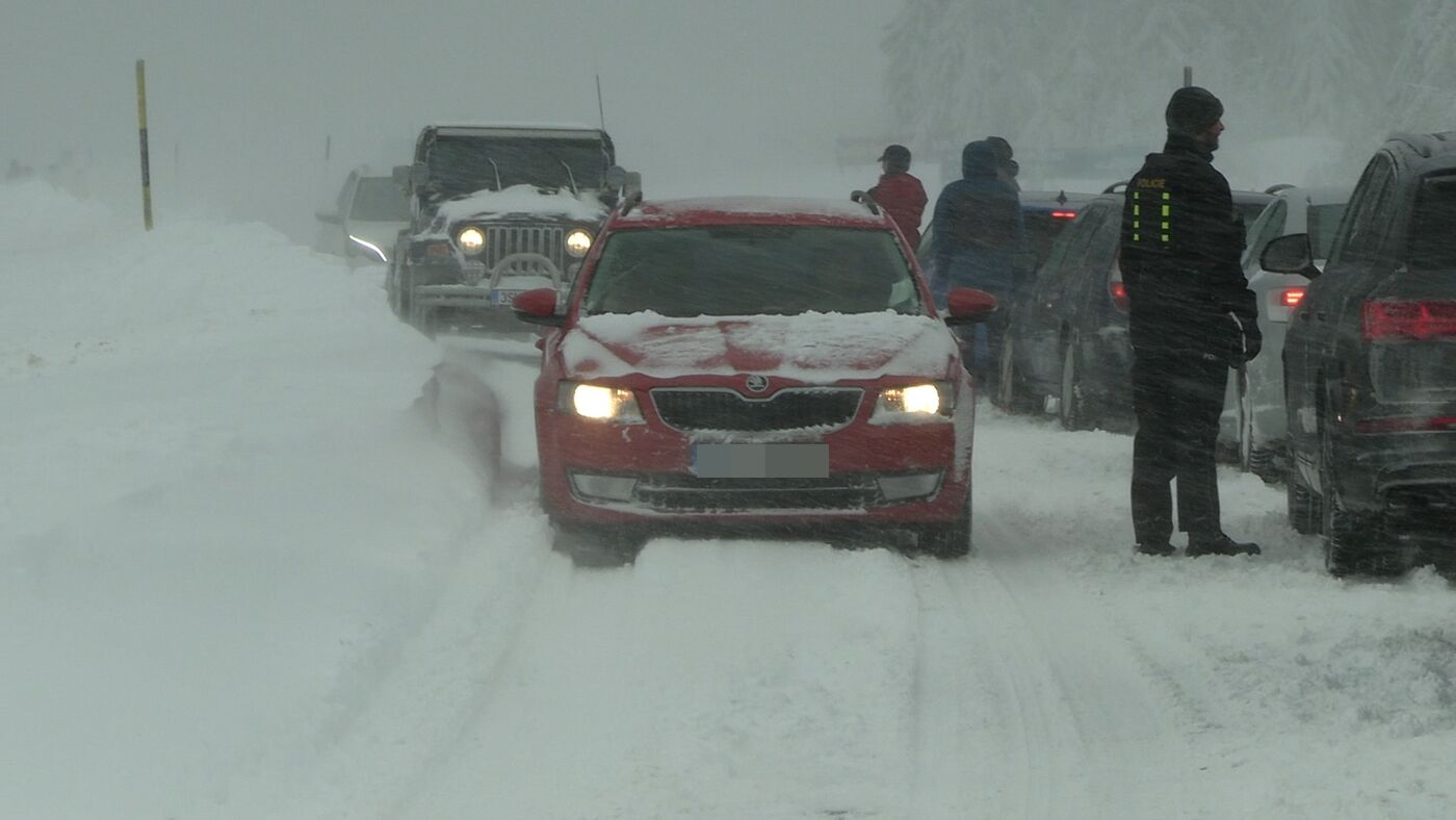 Eine Schneefront ist über das Erzgebirge gezogen. Sie verursachte am Samstagvormittag rund um Oberwiesenthal Chaos. Schneesturm und 20 Zentimeter Neuschnee waren für den Anreiseverkehr in den Skigebieten zu viel. Autos und Busse steckten fest. Es ging weder vor noch zurück. Rettungskräfte kamen nur mit dem Schneemobil voran. Skifahrer mussten zu Fuß weiter. Es soll auch am Nachmittag noch schneien.