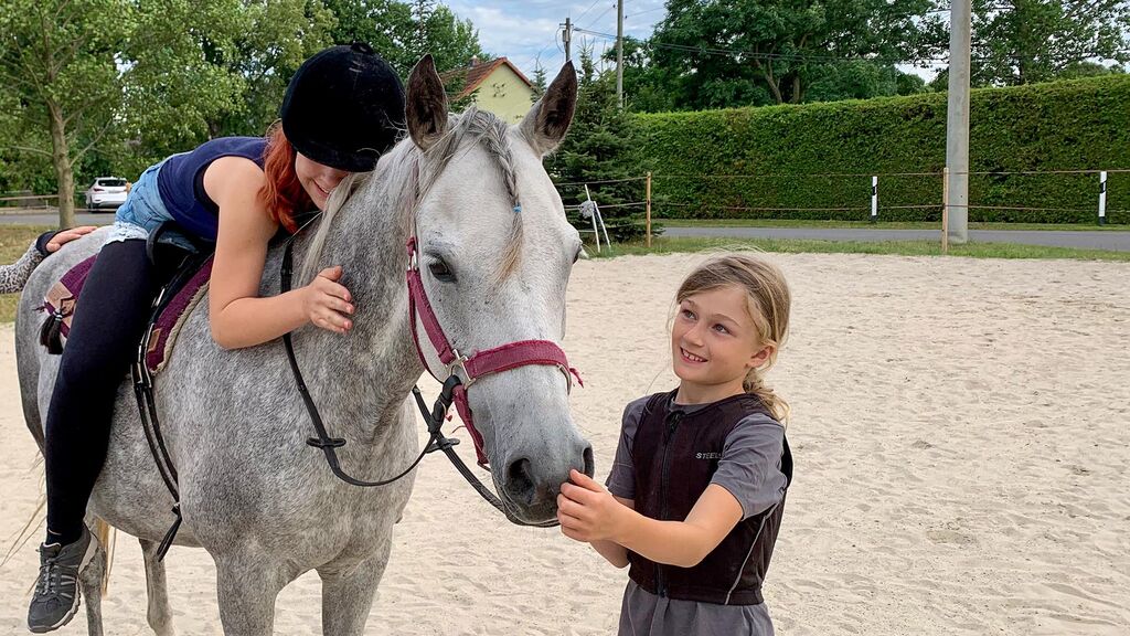 „Mädels, die am Anfang noch etwas ängstlich vor den Tieren standen, greifen jetzt routiniert zur Striegelbürste und sitzen dann strahlend auf dem Pferd. Das ist toll!“ sagt die Erzieherin.