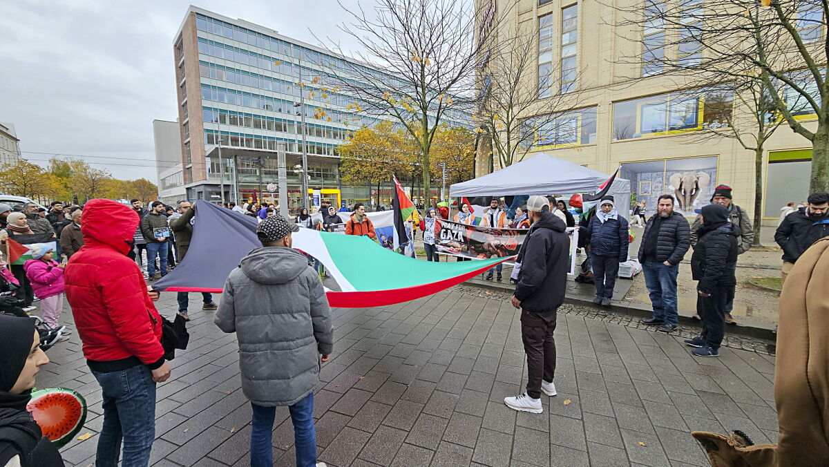 Bei der Kundgebung unter dem Motto „Frieden für Palästina - Freiheit für alle Völker“ zählte die Polizei in der Spitze bis zu 200 Teilnehmer.