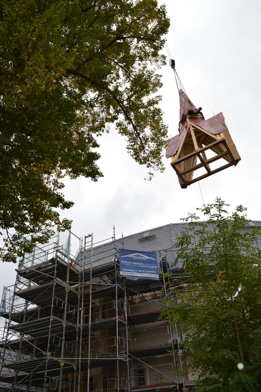 Und jetzt hat das Millionen-Vorhaben eine weitere Hürde genommen. Am historisch bedeutsamen Standerker mit seiner Turmspitze wurde Richtfest gefeiert.