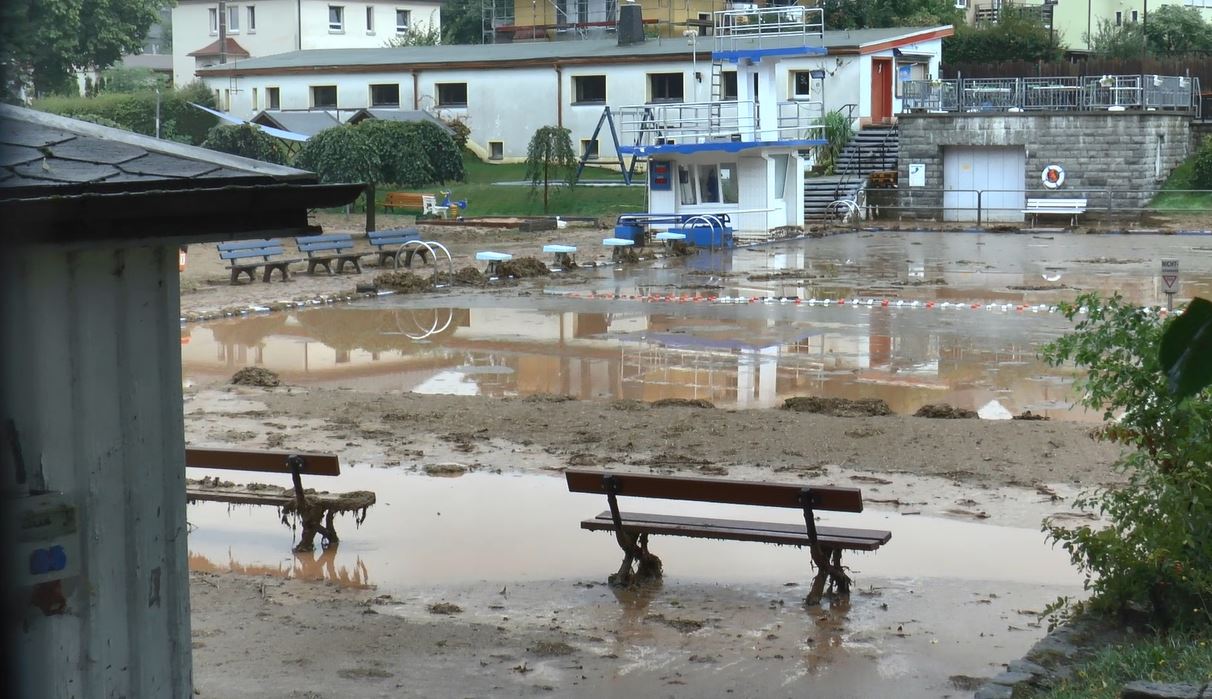 - Das Sommerbad in Gersdorf nach dem Unwetter.