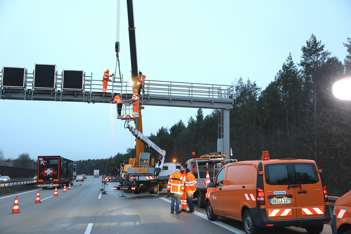 Ein Schwerlasttransport hat in der Nacht zum Mittwoch den Verkehr auf der A4 Dresden Richtung Chemnitz lahm gelegt. Der Brummi war auf dem Weg zum Dresdner Alberthafen und hatte eine Schilderbrücke heruntergerissen. Der Sattelschlepper war mit 6,30 Meter gut 25 Zentimeter höher als erlaubt, sagte uns die Polizei. Die Autobahn wurde vorübergehend zwischen den Abfahrten Wilder Mann und Neustadt gesperrt und der Verkehr umgeleitet. Am frühen Mittwochmorgen wurde mit der Reparatur der Schilderbrücke begonnen und dafür die rechte Spur gesperrt. Im morgendlichen Berufsverkehr kam es deshalb zu einem kilometerlangen Stau. Zeitweise ging bereits ab der AS Ottendorf-Okrilla gar nichts mehr.
