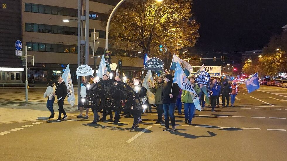 Viele Teilnehmer hatten sich Lichterketten umgehängt, einige trugen leuchtende Schwibbögen. Erneut waren viele Fahnen der Freien Sachsen zu sehen, ebenso wie einige Russlandfahnen. Am Stadthallenpark hatten sich etwa 20 Leute zum Gegenprotest versammelt.