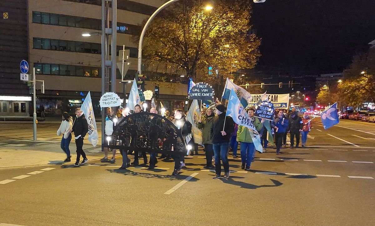 Schwibbögen und Lichterketten bei Demo in der Innenstadt