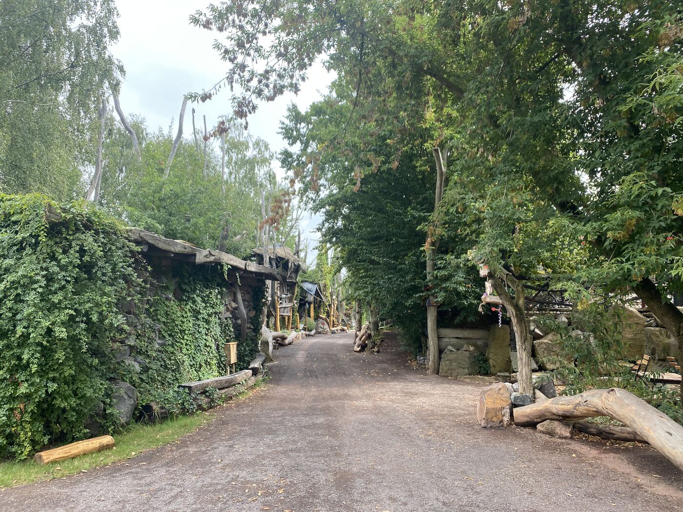 Über 20 Themenwelten verteilen sich auf mehreren Hektar. Allerdings nicht so recht voneinander abgrenzbar. Alles geht irgendwie ineinander über und bildet eine große Einheit. Überall muss man eigentlich mehrmals hingucken, um die ganzen liebevollen Details zu sehen. Es gibt Kletter- und Rutschmöglichkeiten für verschiedene Altersgruppen, es gibt eigens kreierte Spielmöglichkeiten und ganz viel Natur - unter anderem mit einem riesigen Teich.