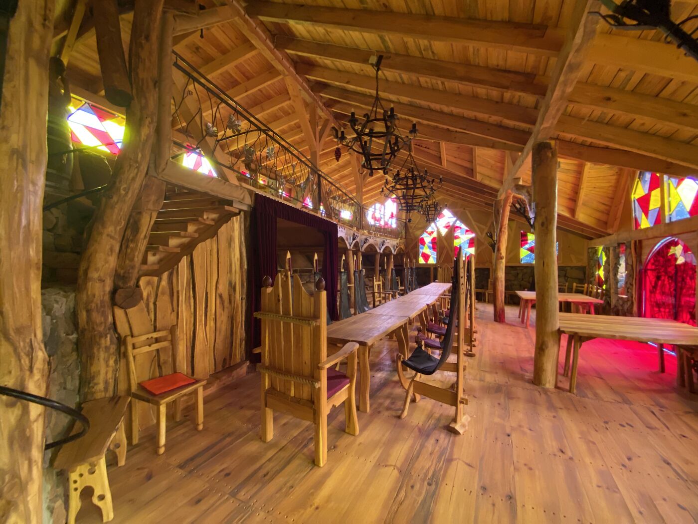 - Die schicke Kantine im Arkazien. Alles im Park ist selbst gemacht aus Robinienholz.
