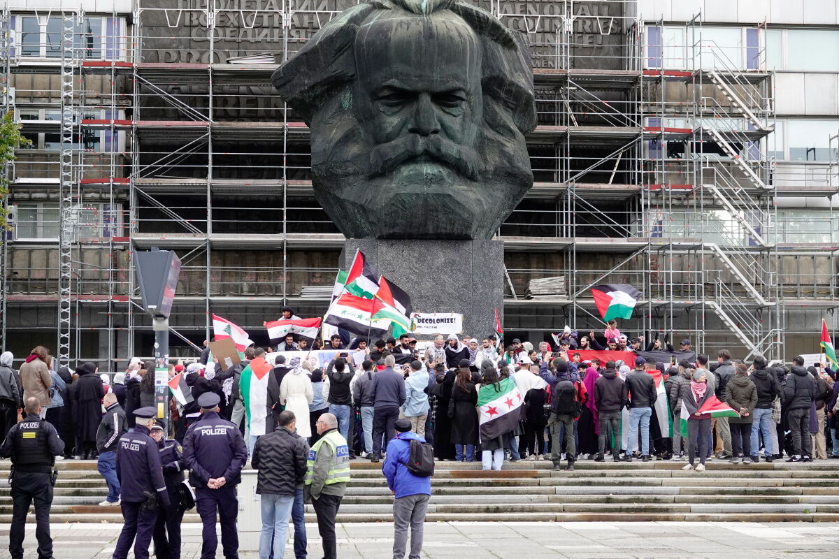 Nach einer Pro-Palästina-Demo am Sonntagnachmittag vor dem Marx-Kopf in Chemnitz ermitteln Polizei und Staatsanwaltschaft. Die Kundgebung selbst war zwar genehmigt, allerdings wurden dabei Parolen gerufen, die möglicherweise den Straftatbestand der Volksverhetzung erfüllen. Gegen zwei Teilnehmer wird außerdem wegen Verstoß gegen das Vermummungsverbot ermittelt. In der Spitze zählte die Polizei 200 Teilnehmer. Zu Auseinandersetzungen kam es nicht.