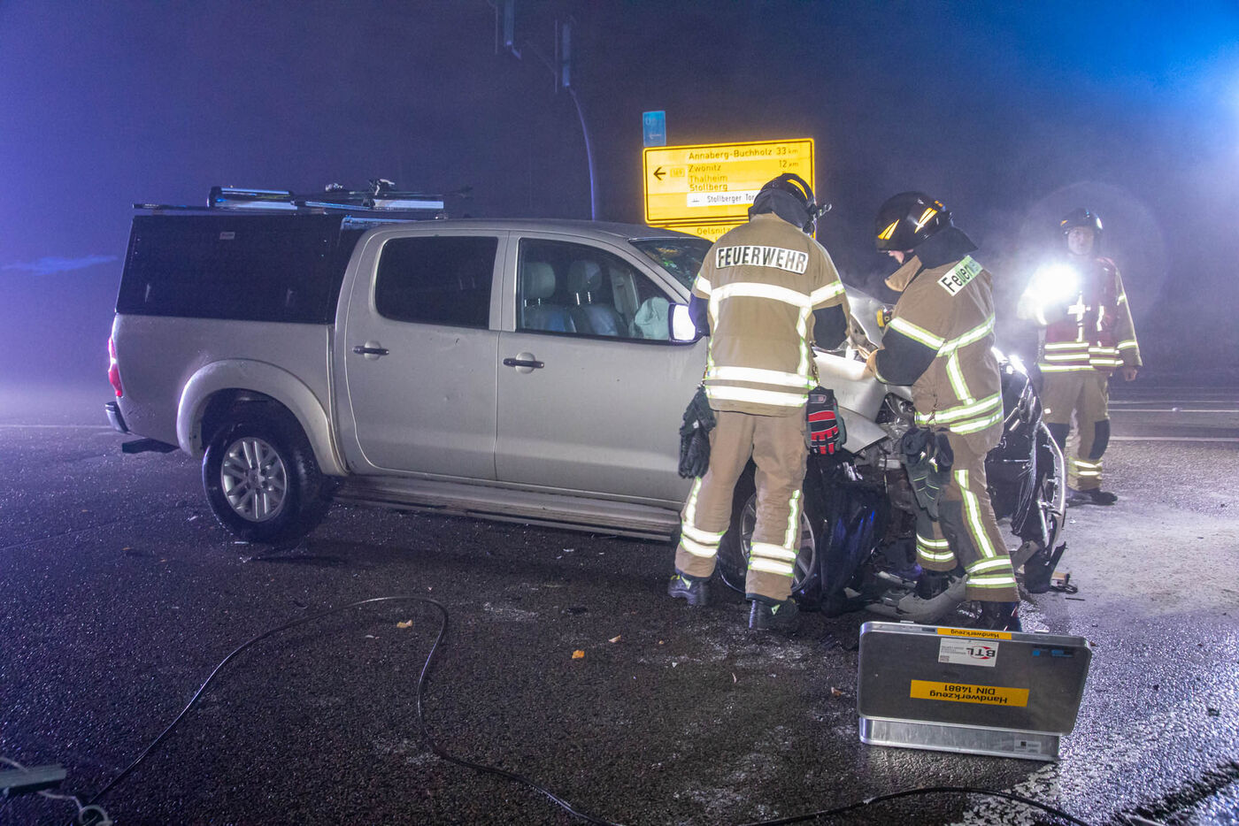 - Kameraden der Stollberger Feuerwehr sicherten die Unfallstelle ab.