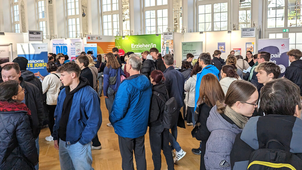 Ein Besuch auf der Karrieremesse Stuzubi ist für Schüler*innen ein zentraler Baustein ihrer beruflichen Orientierung. „Diese Messe hat mich definitiv weitergebracht! Einfach Klasse!“, schwärmt Malte (18), der im vergangenen Frühjahr die Berufsorientierungsmesse in Leipzig besucht hat. Auch für Unternehmen, Universitäten, Hochschulen und Organisationen zählt die Veranstaltung zu einem der wichtigsten Instrumente, um motivierte Nachwuchstalente kennenzulernen. „Ich bin einfach begeistert, welche tollen Möglichkeiten diese Messe bietet. Vielfältige Angebote treffen auf sehr interessierte Nachfragende, besser geht es nicht“, lobt eine Vertreterin der Aus- und Weiterbildungsschulen Sachsen des Vereins für Motivation, Kommunikation und berufliche Bildung e.V., der im Vorjahr mit einem Messestand auf der Karrieremesse vertreten war.
