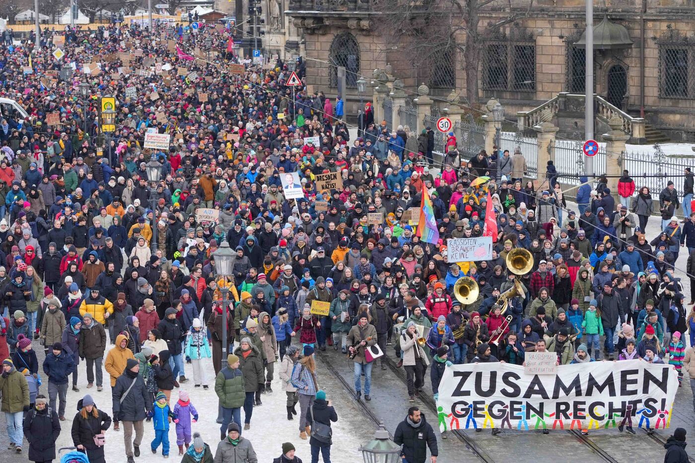 Eine gewaltige Menschenmenge hat am Sonntag in Sachsen gegen die AfD und für die Demokratie demonstriert. Alleine in Dresden sprach ein Polizeisprecher von mehreren Tausend Teilnehmern, die sich auf dem Schlossplatz versammelt hatten.