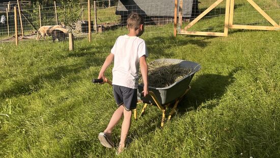 Bevor die Tiere einziehen konnten, gab es aber einiges zu tun. Den Zaun abdichten, ein richtiges Gehege bauen und natürlich einen Unterstand mit Stall fertigen. Mutterschaf Micke und ihre Lämmer Otto und Maya sind seit ihrem Einzug nun der Star in der Wohngruppe. Es gibt einen Schaf-Pflegeplan und alle Kinder beteiligen sich gern.