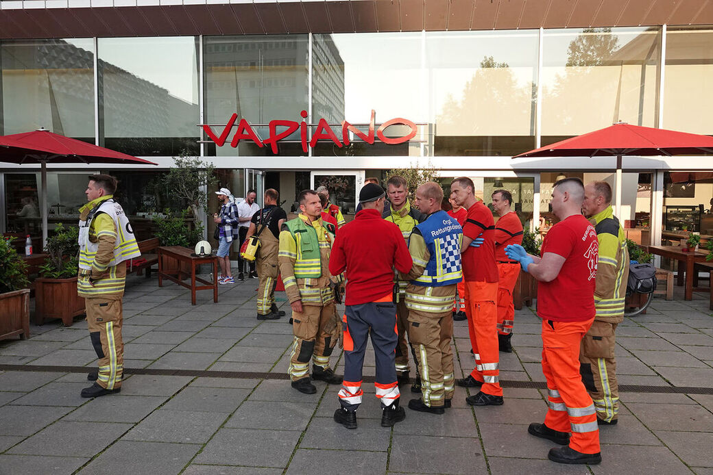 Die Feuerwehr sperrte den Bereich rund um das Restaurant weiträumig ab. Da immer wieder einzelne Menschen durch den abgesperrten Bereich liefen, wurde die Bevölkerung unter anderem über die sozialen Medien aufgefordert, den Bereich weiträumig zu meiden und die Absperrungen zu beachten. Eine Gefahr für die Bevölkerung bestand nicht. Die beiden Unbekannten waren beim Eintreffen der Einsatzkräfte verschwunden. Die Polizei hat die Ermittlungen zu dem Sachverhalt aufgenommen. (dpa)
