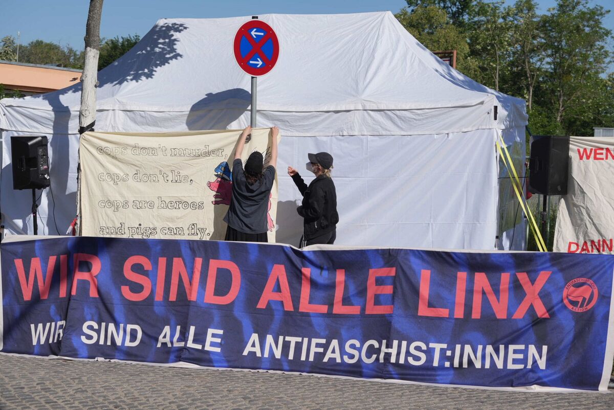 In der linken Szene wurde zu Demonstrationen für Lina E. und ihre Mitstreiter aufgerufen - für den Tag der Urteilsverkündung und für den kommenden Samstag. Am Mittwoch sind Kundgebungen am Hammerweg und am Jorge-Gomondai-Platz in Dresden und im Lene-Voigt-Park in Leipzig angemeldet. Die DVB mussten am Mittwochmorgen die Linie 76 umleiten.