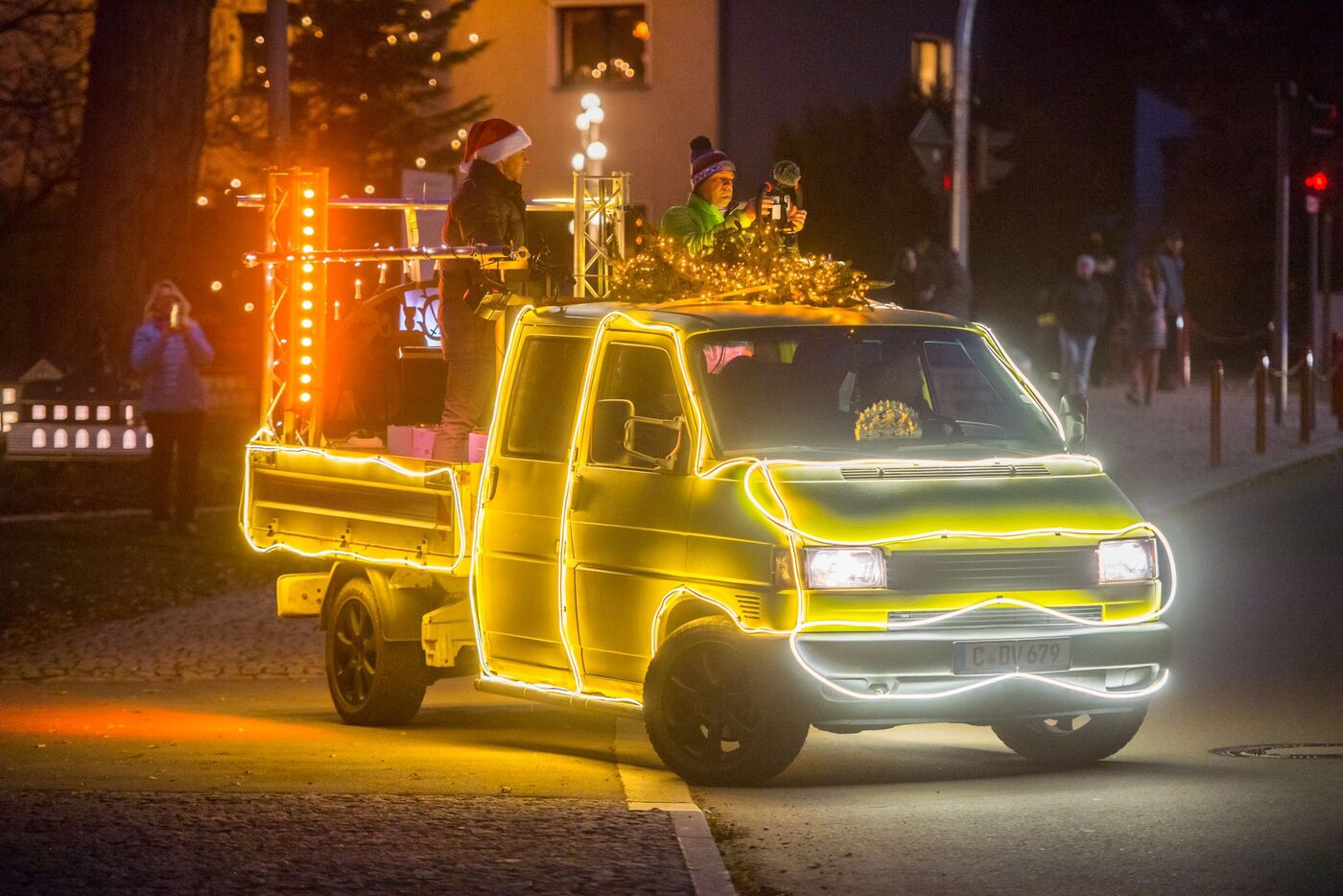 Das Weihnachtsmobil aus Neukirchen fährt auch in diesem Jahr wieder durch das Erzgebirge. Am Sonntag bringt der festlich beleuchtete Pritschenwagen zunächst in Thalheim Weihnachtsmusik in die Straßen. Nächsten Samstag ist das Auto dann in Neukirchen und Adorf unterwegs, am dritten Advent geht es durch Jahnsdorf und seine Ortsteile. Auch der Weihnachtsmann fährt mit und verteilt Süßigkeiten an die Kinder.