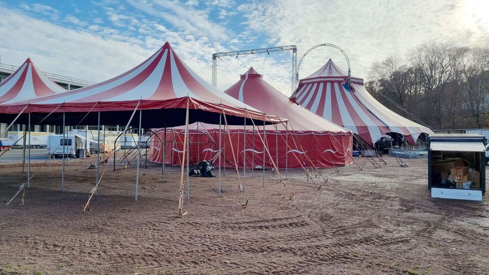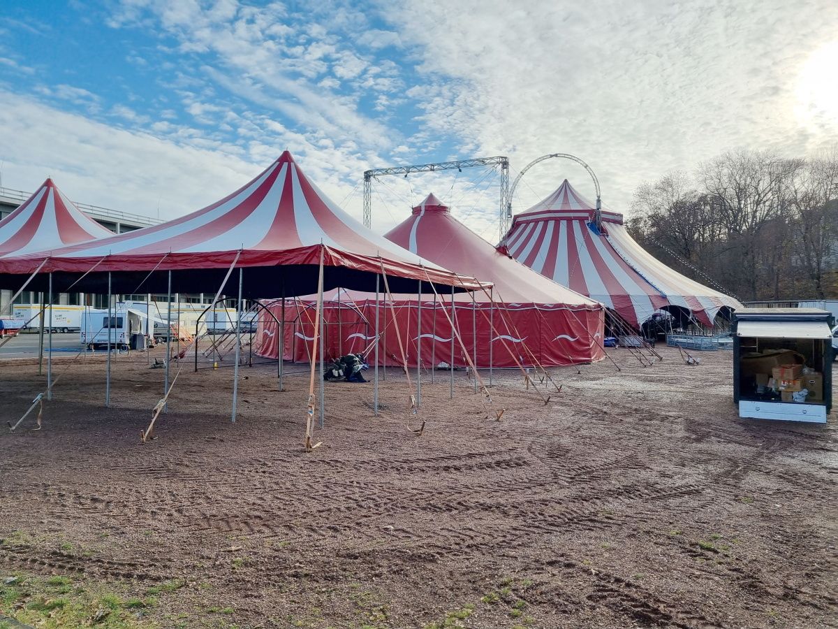 Weihnachtszirkus auf dem Hartmannplatz wird aufgebaut